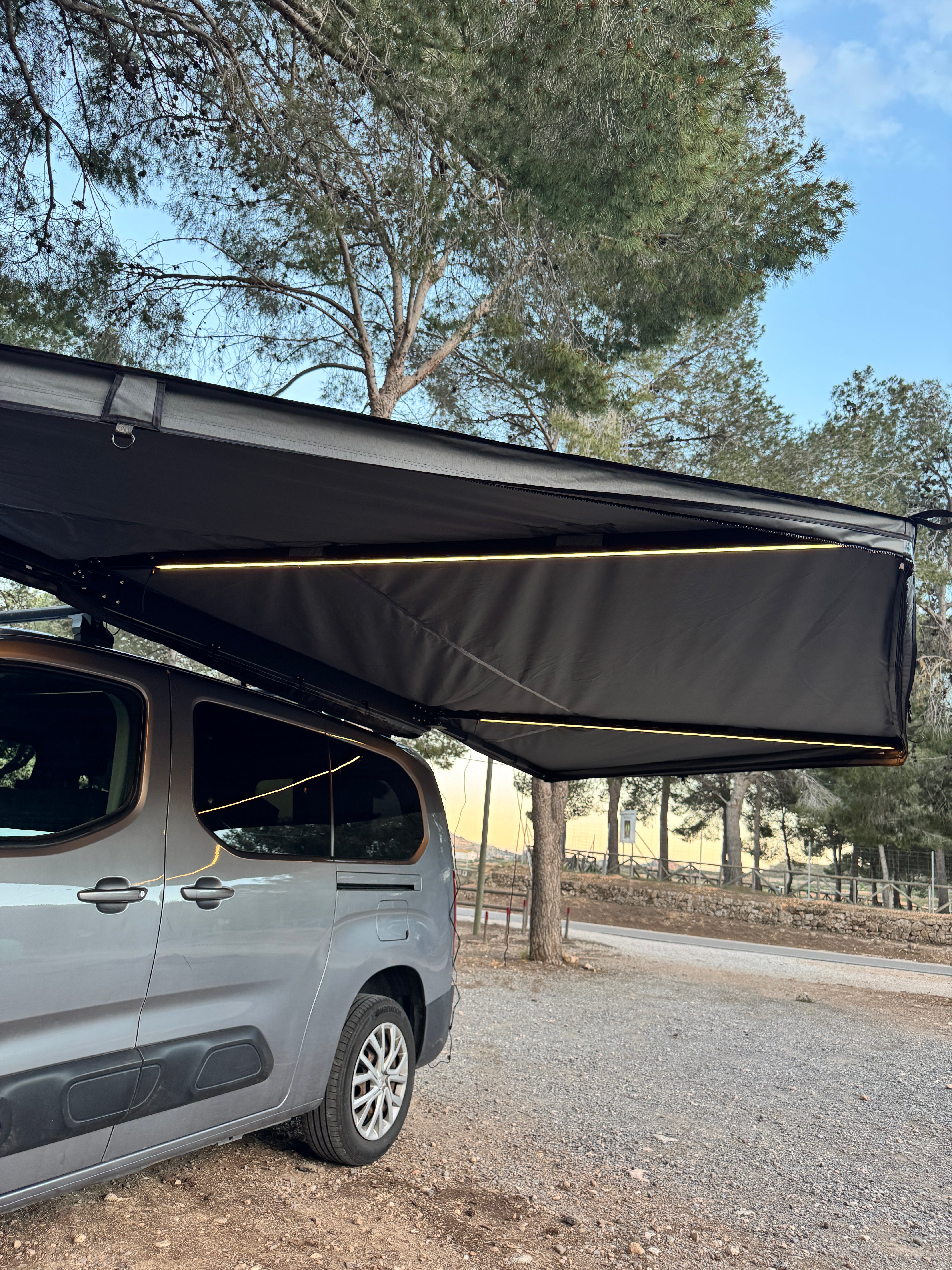 El Toldo 180º Jovive es la solución perfecta para crear un amplio espacio de sombra en cuestión de segundos. Diseñado para adaptarse a la mayoría de vehículos, furgonetas camper y 4x4, ofrece hasta 12 m² de sombra y es ideal para viajes, camping y aventuras overland. Su sistema de apertura rápida permite desplegarlo fácilmente alrededor del lateral y la parte trasera del vehículo, creando una zona protegida en pocos minutos.